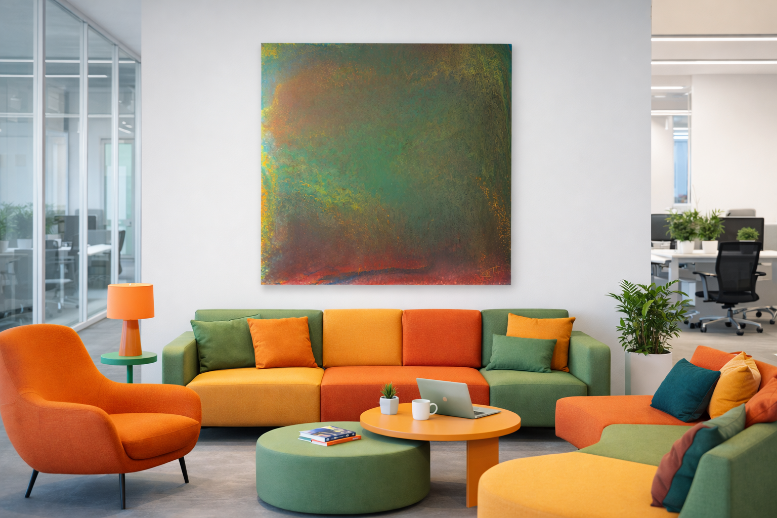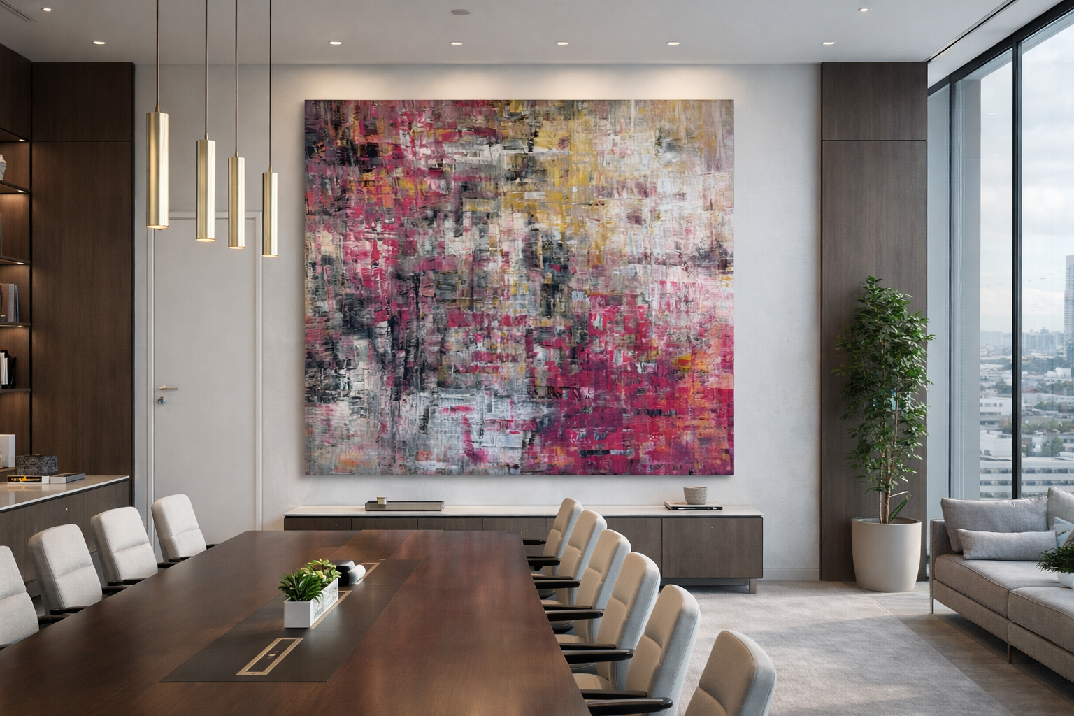 Man kann über unsere Werke viel sagen – aber man versteht ihre Wirkung erst, wenn sie bei Ihnen ankommen und hängen. Dann passiert etwas, das man nicht „aus dem Kopf“ planen kann: Der Raum kippt in eine neue Präsenz. Plötzlich ist da Spannung, Tiefe, Dynamik – und diese besondere Energie, die sich unmittelbar überträgt. Auf Ihre Besucher. Auf Ihre Kundschaft. Auf Ihre Mitarbeiter. Und auf Sie selbst.