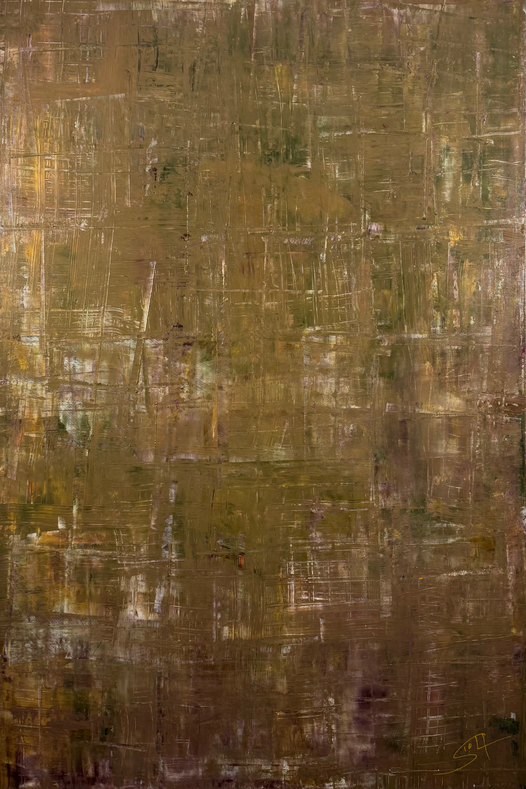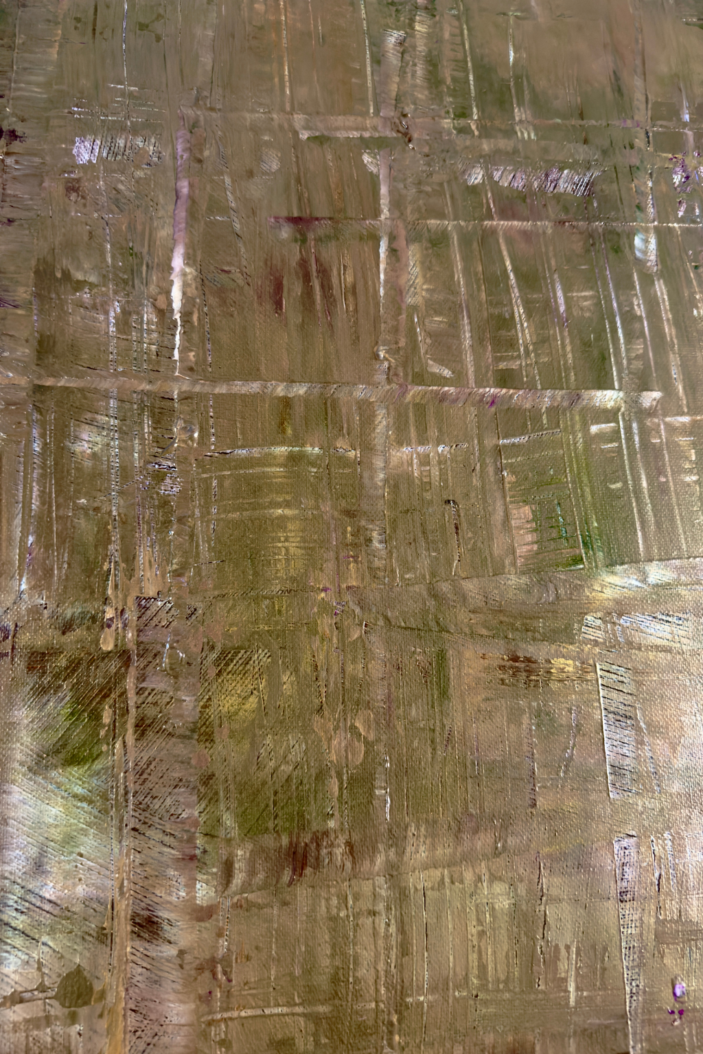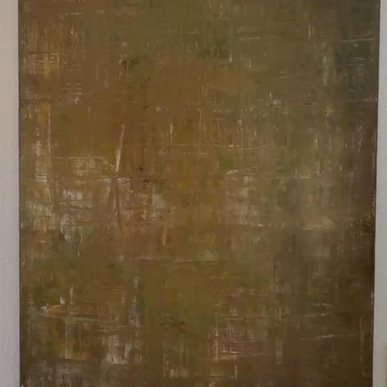 Warme Braun-, Ocker- und Erdtöne bilden das Fundament dieses Werkes und erinnern an fruchtbare Böden, geerntete Felder und mineralreiche Schichten. Eingearbeitete Grün- und Violettnuancen sowie feine Goldakzente verweisen auf das „natürliche Gold“ der Erde – Pflanzenwachstum, Rohstoffe, verborgene Schätze im Boden.