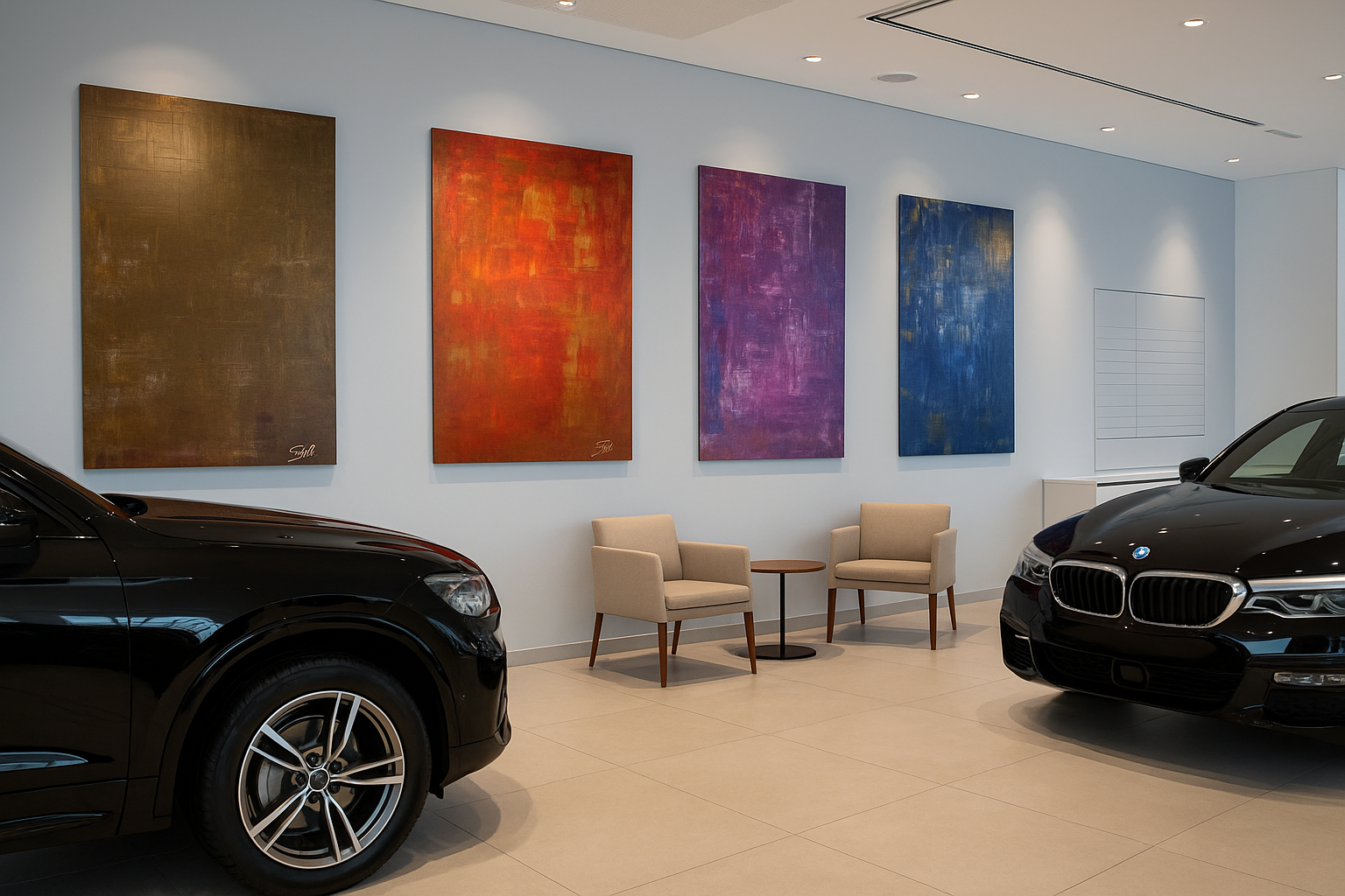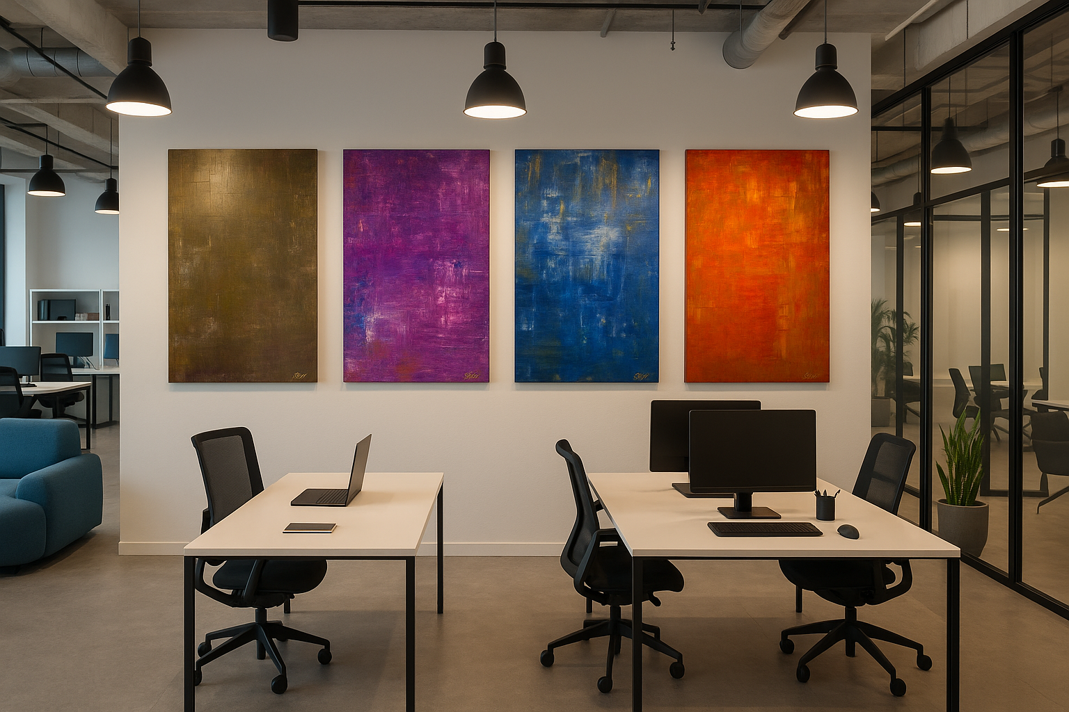 Die „4 Elements“-Gesamtedition entfaltet ihre größte Wirkung als geschlossenes Ensemble – ideal über mehrere Wandabschnitte oder entlang einer visuellen Achse in Foyers, Empfangsbereichen, Besprechungszonen, Vorstandsetagen, High-End-Showrooms oder exklusiven Privatresidenzen.