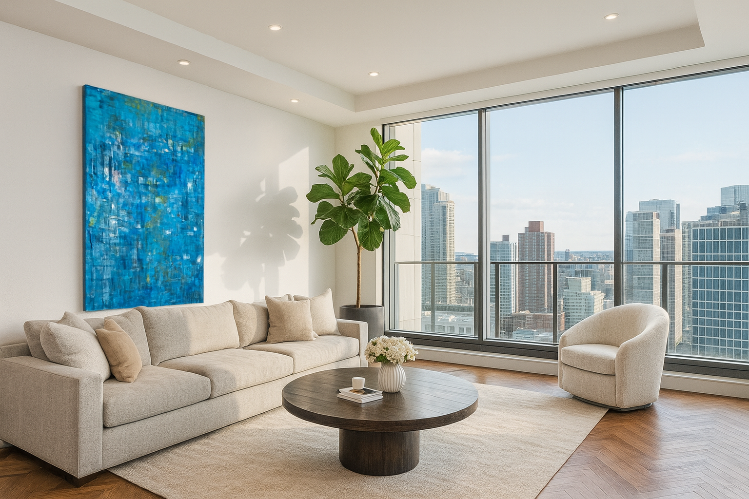 Mit seinem Format von 100 × 150 cm gehört Skydiving zu den meistgesammelten Größen der zeitgenössischen abstrakten Malerei: groß genug, um einen Raum deutlich zu prägen, zugleich flexibel einsetzbar in Business- und Privaträumen. Die vielschichtige Blaudramaturgie in Kombination mit den subtilen Gold- und Lichtakzenten verleiht dem Werk eine hohe Wiedererkennbarkeit und eine klare, professionell wirkende Präsenz – ideal für anspruchsvolle Sammlerinnen und Sammler sowie für Unternehmen, die bewusst ein starkes, modernes Statement setzen möchten.