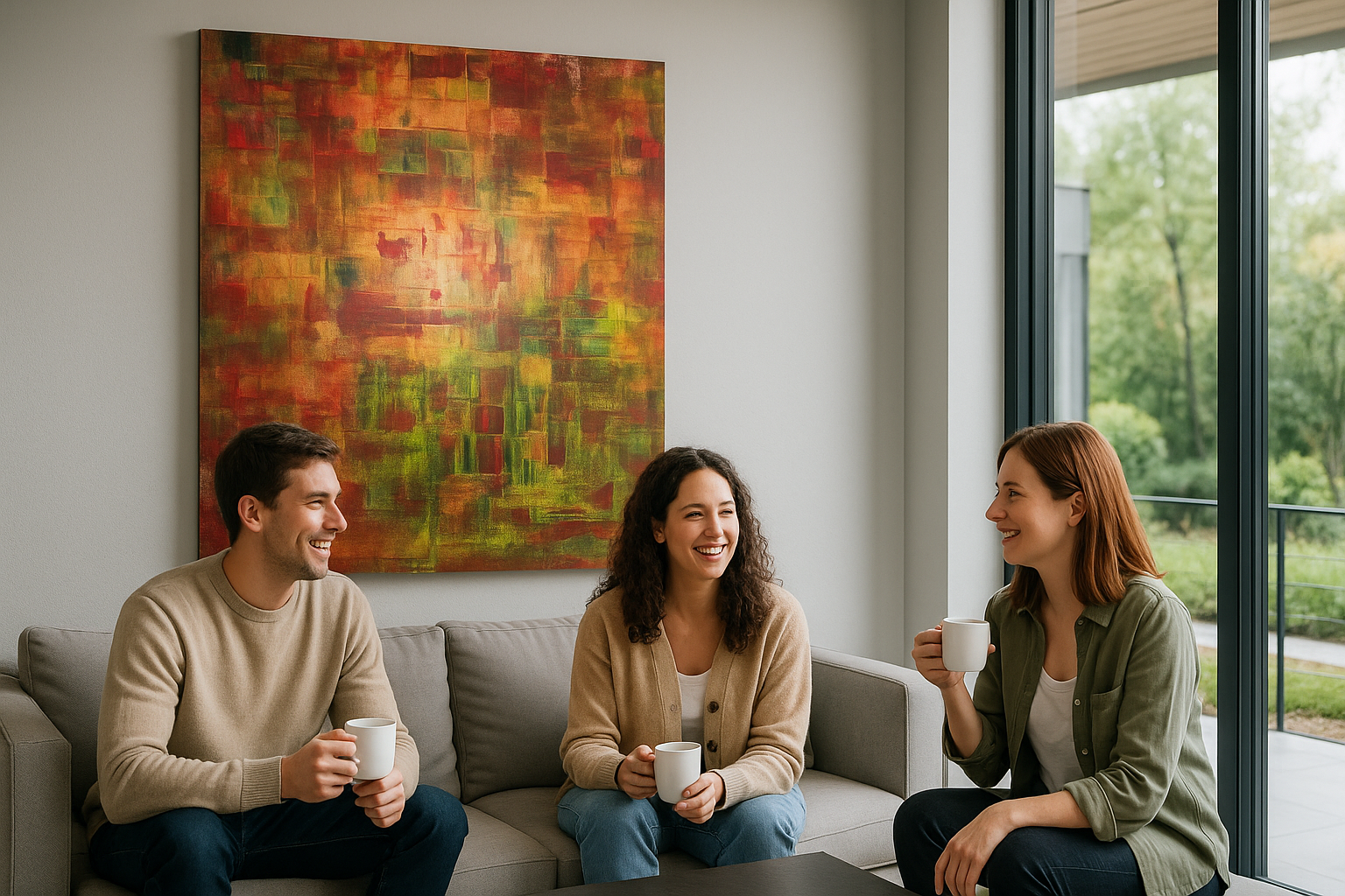 Die Leinwand ist auf einen stabilen Galerie-Keilrahmen mit ca. 3,5 cm Tiefe gespannt; die Kanten sind vollständig mitgestaltet. So wirkt das Bild an der Wand wie ein eigenständiges Objekt und erhält eine klare Präsenz im Raum.